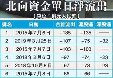 同時,北向資金也出現大幅淨流出,半天就淨流出超50億元,全天淨流出107.74億元,其中滬股通淨流出75.16億元,深股通淨流出32.58億元。這創下了2019年以來北向資金單日最大淨流出,此前的紀錄為3月7日的39.7億元,也是2015年7月7日以來最多的北向資金單日淨流出。