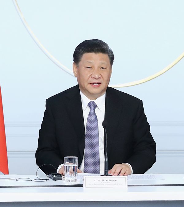 中法友谊源远流长。今年是中法建交55周年。两国已经开展了许多战略性合作,还有很大合作空间。正如法国朋友所说,不登上埃菲尔铁塔,就看不到巴黎最美的风景。新形势下,我们应登高望远,面向未来,加强合作。我们要深化核能、航空航天、农业食品、医疗卫生、汽车制造等传统领域合作,加快推动绿色制造、数字经济、人工智能、金融服务、城市可持续发展等新兴领域合作,加强气候变化合作,全面落实《巴黎协定》,推动今年联合国气候峰会取得积极成果,为两国人民和各国人民谋福祉。