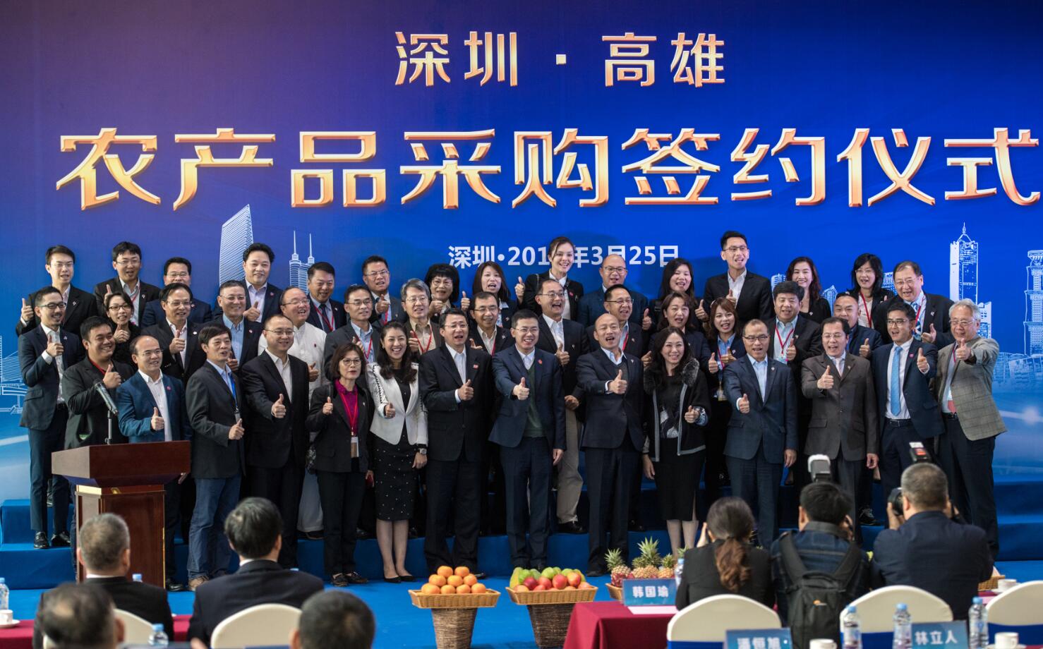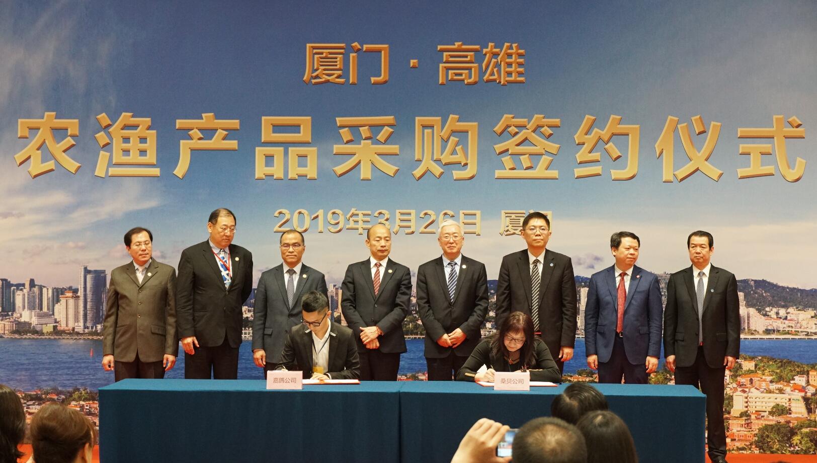 農產品推銷仍是「賣菜郎」行程的重點。當天下午,廈門5家農漁產品貿易公司對高雄採購,簽下5張大單,水果與漁產品各1500萬美元,合計3000萬美元(約合新台幣9億元)。加上此前港澳深分別簽下的26.71億、7.3億、9.2億元(新台幣)合約,韓國瑜此行已累計簽下訂單總額近52.2億元新台幣。