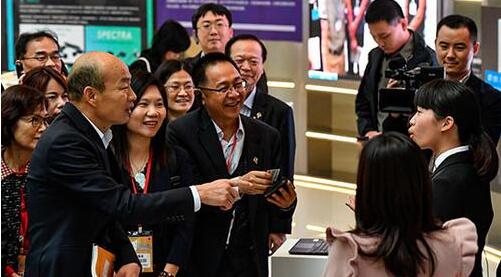 资料图:3月24日,高雄市市长韩国瑜到访深圳。图为韩国瑜为台湾青年创新创业基地揭牌。 中新社