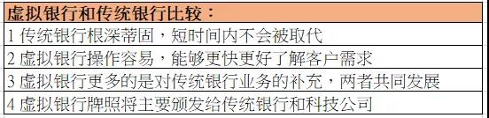 华大证券首席宏观经济学家杨玉川表示:“目前来看,虚拟银行还处在一个摸索的阶段,它在现阶段多事对于传统银行业务的一个补充,查漏补缺。举例说虚拟银行能更快捷的掌握客户资料,提供个性化的服务,比如客户周转资金还需要两天,虚拟银行则可以为他制定一个专门的服务,提供短期贷款。”