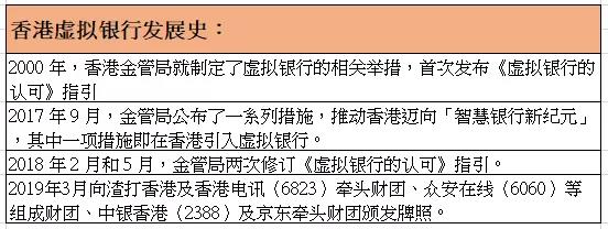 事实上,早于2000年香港金管局就制定了虚拟银行的相关举措,2000年,香港金管局首次发布《虚拟银行的认可》指引;2017年9月,金管局公布了一系列措施,推动香港迈向“智慧银行新纪元”,其中一项措施即在香港引入虚拟银行。2018年2月和5月,金管局两次修订《虚拟银行的认可》指引。直至现在,6张虚拟银行牌照才尘埃落定。