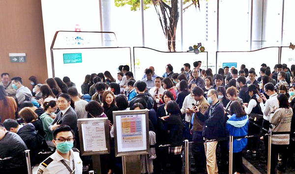 大批在機場工作人士排隊打麻疹針。