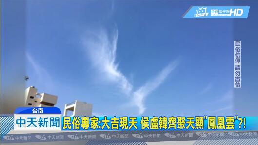 这则新闻报道背景是,距离台南市第二选区“立委”补选不到一个月,国民党参选人谢龙介2月17日邀请北、中、南三市市长侯友宜、卢秀燕及韩国瑜为其站台催票。中天新闻台播报了上述标题的新闻,还找来民俗专家,称有此现象是因为“大吉现天”。当时该新闻被网友截图发在岛内社交媒体PTT,亲绿媒体对此大作文章嘲讽。