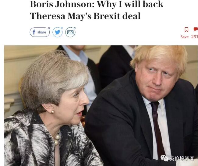 梅姨宣布辞职决定后,保守党内”硬脱欧派“、前外交大臣约翰逊马上在专栏发文,正式表态将投票支持梅的脱欧协议。