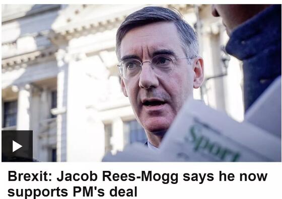 另一位”硬脱欧派“大佬Jacob Rees-Mogg在梅首相宣布辞职前已经软化态度,表示愿在第三次议会投票中投赞成票。