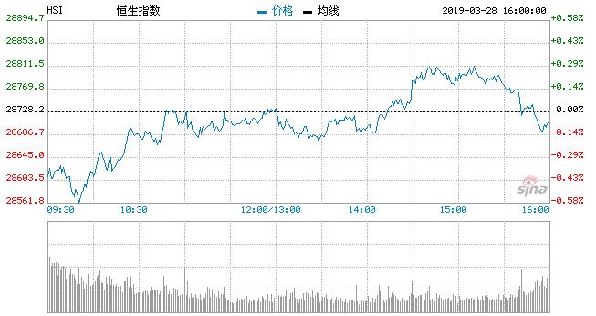 【香港商报网讯】3月28日消息,美股周三收跌。美国10年期国债收益率降至2017年12月以来新低,美债收益率倒挂,令投资者担心经济衰退逼近。今日开盘,港股恒生指数低开0.23%,随后在28690点上下波动。截至收盘,恒指涨0.16%,报28775.21点;国企指数跌0.09%,报11294.81点;红筹指数涨0.74%,报4571.52点。