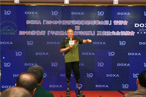 【香港商報网訊】記者盧慧萍報道︰由瑞士時度表DOXA全力支持的「無腿勇士」夏伯渝,成功勇奪2019年勞倫斯「年度最佳體育時刻獎」。大會於日前更為他舉行祝捷會。夏伯渝更分享成為世界上第二位登頂珠峰的雙腿截肢者的傳奇故事。另外,DOXA更為支持將於5月登珠穆朗瑪峰(下簡稱珠峰),來自中國香港攀山及攀登總會的四人攀山港隊代表舉行誓師大會,正式授旗攀山隊出發。DOXA首席營運總監劉偉華更親臨會上分享對攀山人士登峰的支持及感受。