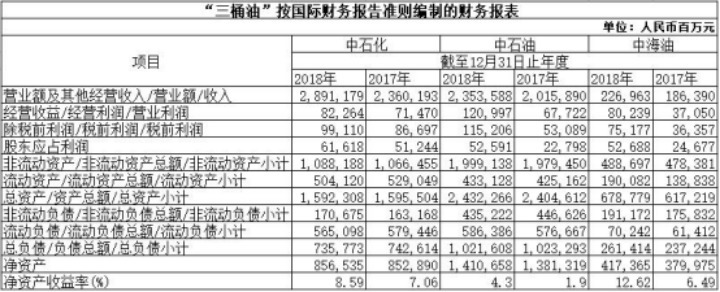 “三桶油”公布2018年财报