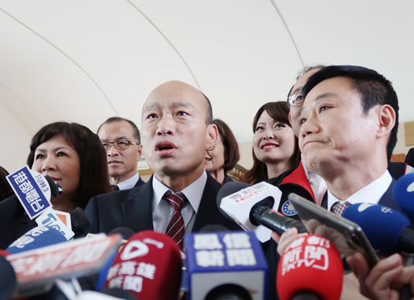 韓國瑜昨日到市議會拜訪,指民進黨抹黑非常無聊。 中央社