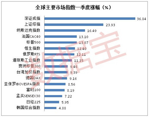 今年一季度,深成指累计上涨了36.84%,领涨全球主要市场指数,在深成指历史一季度涨幅中排名第三,也是近十年来最高。