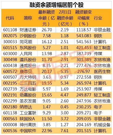 尤其是2月1日以来,两融余额增长态势明显,增幅达29%。数据宝统计显示,与2月1日相比,55股融资余额增幅超100%。