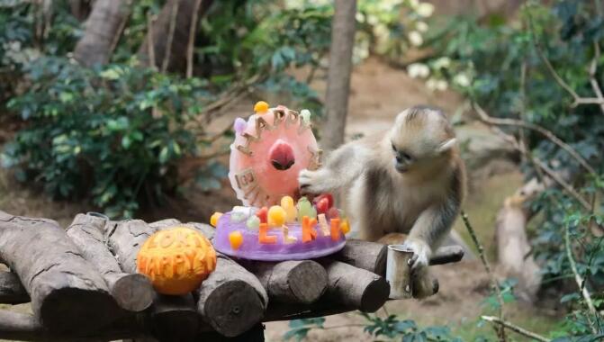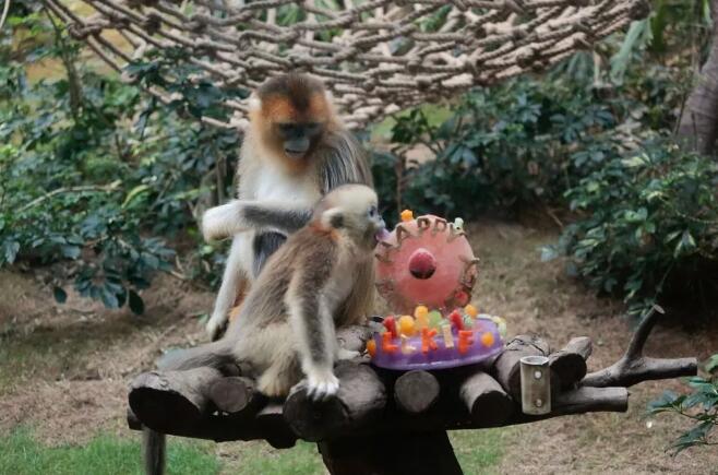 (乐其一岁生日时海洋公园为它准备了美味的“生日蛋糕”!)