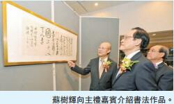 蘇樹輝致辭時說:「甲子書學會今年踏入第35周年,很高興看到我們每兩年一度的會員作品展已發展成為一個廣受歡迎的傳統活動。我們要求每位會友寫三幅作品,第一幅是臨摹歷代碑帖,第二幅是寫《禮記》以回應本書法展的主題《禮儀天下》,第三幅是自由創作。三幅作品體現傳承、主題和創新。字是人的心畫,從中可反映一個人的修養。我們過去的書法展曾以儒、釋、道和易經繫辭為主題,不僅令人留下深刻的印象,也同時推廣中國傳統文化。書法是中華民族文化的根,世界文化的瑰寶,希望年輕一代能夠從寫好中國字做起,不是要求每個人都要當書法家,而是我們必須扎根傳統,傳承中華文化。」