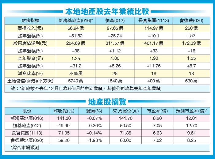 本地大型地產股已各自公布全年業績報告,當中可謂各具亮點。樓價自去年下半年起浮動,市場對地產股信心有所動搖。參考各家發展商之成績表,賣樓收入、核心盈利,以至派息都未見大倒退。不過,對於賣樓為主的地產股而言,在拼業績的同時,亦要比拼土地儲備。