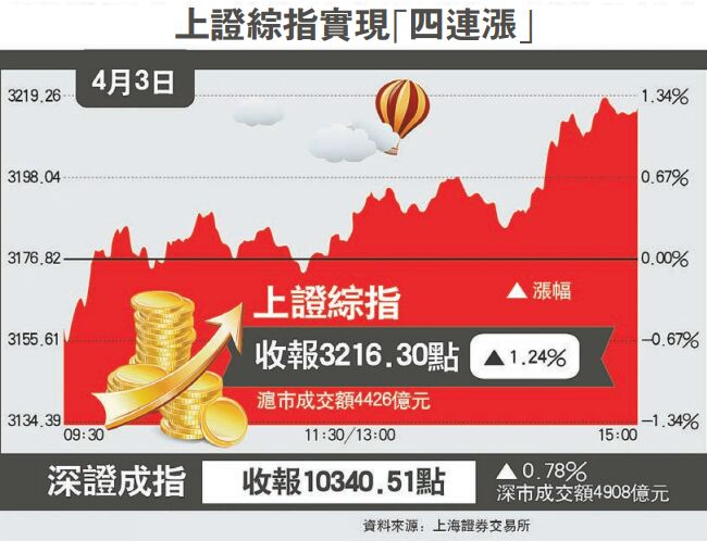 【香港商報网訊】經過前一交易日的短暫整固之後,3日A股再現整體上行。上證綜指站上3200點整數位, 再創階段新高。兩市成交略有萎縮,總量降至萬億元以下。