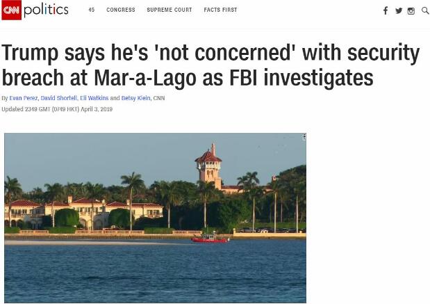 一名美国官员告诉CNN,因为存在间谍活动风险,美国联邦调查局(FBI)目前已经介入,开始调查此事。与此同时,国会众议院民主党议员还要求就特朗普海湖庄园的安保问题召开简报会。CNN称,此事凸显海湖庄园的安保存在漏洞。