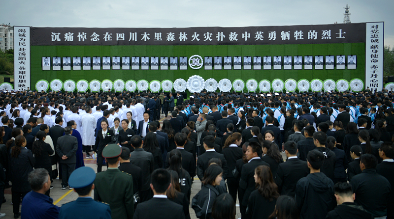 上午10时40分许,悼念活动开始。全体现场人员为牺牲的烈士肃立默哀,表达对逝去英雄的殷殷追思和深切怀念。四川木里森林火灾造成27名森林消防队员和3名地方干部群众牺牲。应急管理部、四川省人民政府有关负责同志先后宣读关于评定烈士、追记一等功、追认中共党员的批复和命令。
