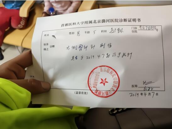 由于清明节期间彬彬没在北京,彬彬妈妈没有随其他几个孩子家长一起去报警,也没有去医院验伤,据已经验伤的几位家长说,他们报警后,警方让他们带着孩子去附近医院验伤。经通州区潞河医院医生的检查,已经有四名孩子开出了诊断证明,四个孩子在手部、面部、臀部都发现了针刺伤。