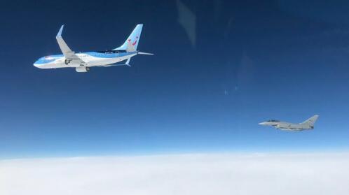 德国一架波音737客机通讯中断,意大利战机紧急升空拦截。(图源:意大利空军)
