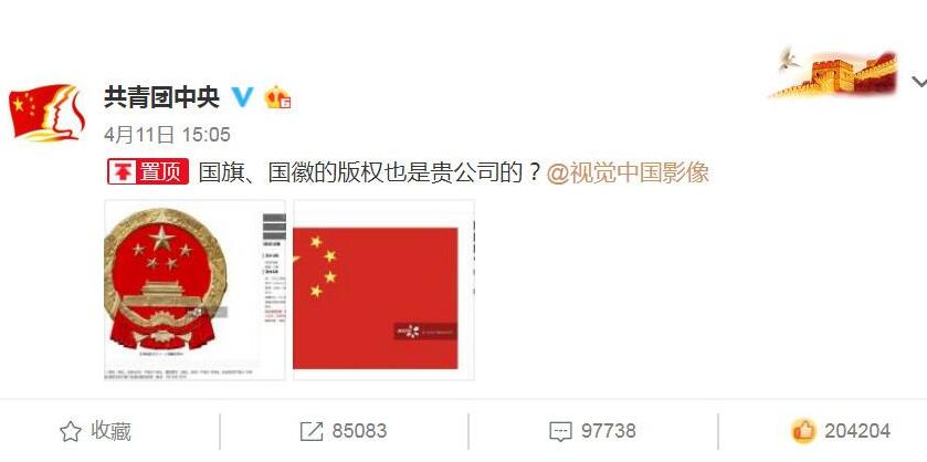 视觉中国在其官方微信发布整改通知,经网民举报的视觉中国网站存在关于国旗、国徽等不合规图片的问题,公司高度重视,立即开展自查。经查核,该图片由视觉中国签约供稿人提供,视觉中国作为平台方没有严格落实企业主体责任,没有尽到严格审核的职责,导致不合规的内容出现在网上。这些问题暴露出视觉中国在管理上存在薄弱环节,为此视觉中国深表歉意。目前,公司已采取措施对不合规图片全部下线处理,并根据相关法律法规自愿关闭网站开展整改,进一步强化企业自律,强化制度建设,提升内容审核的质量,避免类似情况再次发生。再次感谢广大网民和媒体的监督,公司将汲取教训认真整改,自愿接受天津市互联网信息办公室依法依规对本公司的处理。