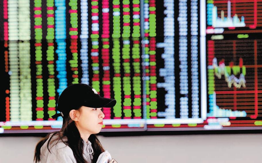 瀋陽一證券營業廳內,市民從下跌的股票屏幕前經過。中新社