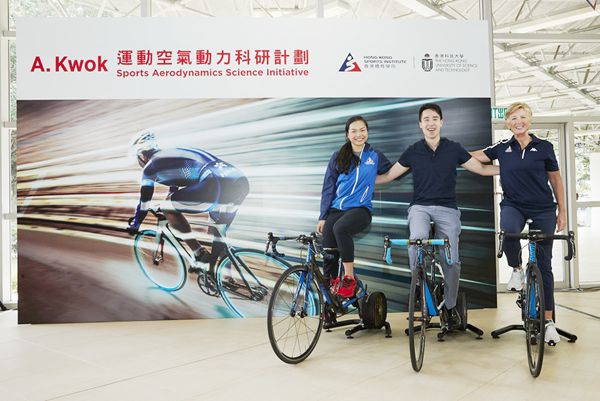 在體育專員楊德強 、體院副院長蔡玉坤、體院精英訓練科技總監蘇志雄、科大工學院副院長莫國泰、中國香港單車總會主席梁鴻德、體院單車總教練沈金康及精英單車運動員李慧詩的見證下,郭基煇、體院院長李翠莎及負責項目的科大機械及航空航天工程學系講座教授張欣昨日簽署合作協議,正式啟動「A. Kwok運動空氣動力科研計劃」。