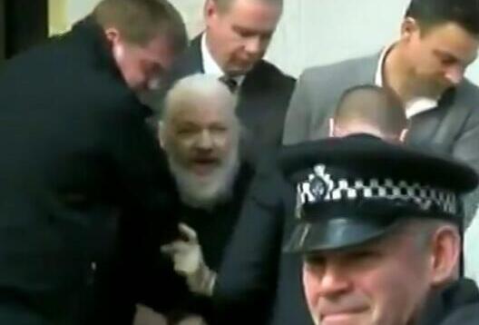 阿桑奇被带出使馆(图源:BBC)