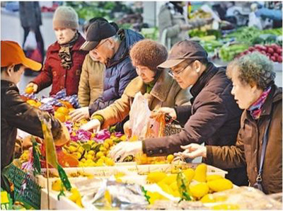 市民在南京一家农贸市场购买水果。苏阳 摄(影像中国)