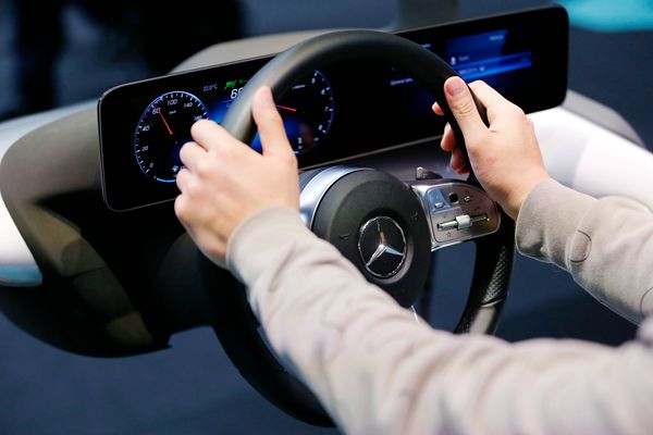 參觀者在世界移動通信大會上體驗平治MBUX系統。新華社