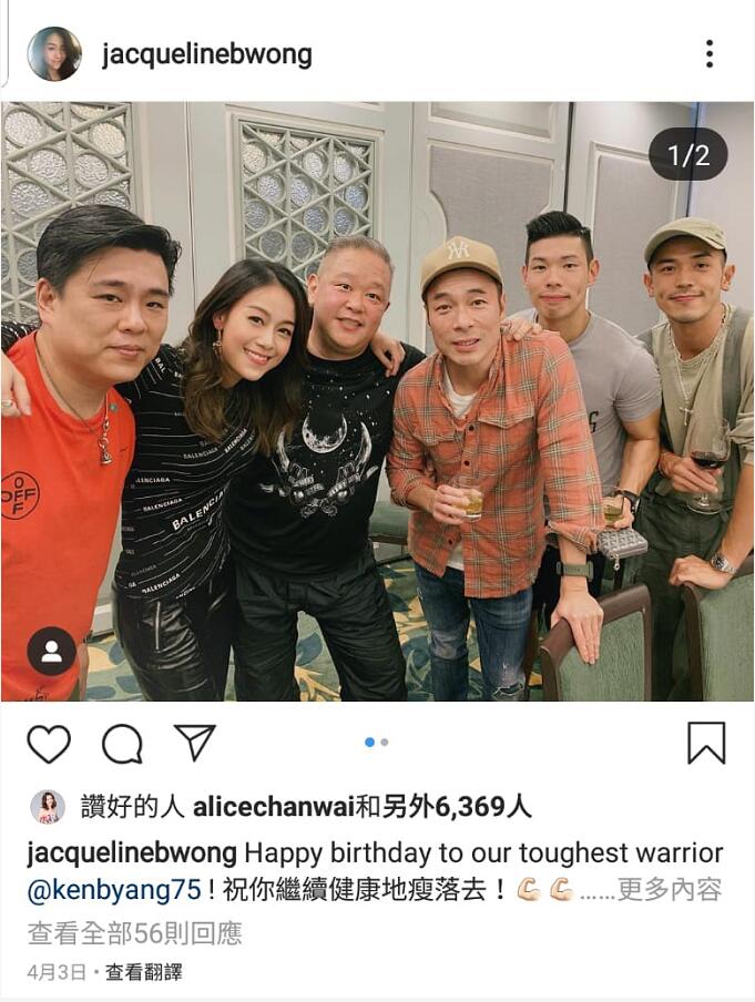 許志安跟黃心穎出軌事件疑發生於本月3日,當天黃心穎曾於互聯網上載跟許志安及多位友人,出席男性友人生日飯局的照片,當晚二人的打扮,跟在片段中的衣服一模一樣。(黃心穎IG圖片)