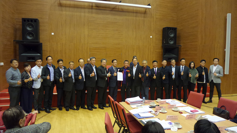 鄉議局全體昨支持劉業強(左十)續任主席。 記者 周駿攝