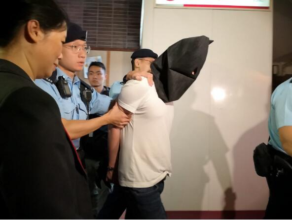 警員拘捕一名身穿白衣男子。