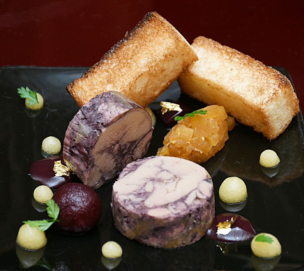 至於食物當然也得夠精緻,才襯得起高雅的藝術環境。套餐選用名貴食材,是酒店行政副主廚Xavier Boyer的得意之作,他曾於多間米芝蓮星級食府工作以及於世界知名的法國餐廳出任高職。套餐的前菜就已經足夠重量級,鴨肝凍批和龍蝦二選一。產自法國的鴨肝口感扎實且綿密,入口即化。配上酸甜的開心果醬,兩者結合產生一種味似葡萄酒的神奇效果。木梨經波特酒(Port)調味不至於過酸,加上口感清新的橙粒,可中和鴨肝的厚重感。