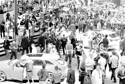 4月16日,观众在上海国际车展上参观。当日,以“共创·美好生活”为主题的第18届上海国际汽车工业展览会在国家会展中心(上海)拉开帷幕,共吸引来自20个国家和地区的1000余家国内外知名企业参展。 记者 陈建力 摄