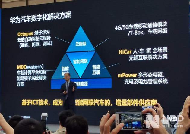 “未来的智能网联汽车与其说是一辆车,不如说是一台计算机。如果这辆车的处理器能力不够,将会影响它的产品销量,而华为要做的事就是提高车的处理器能力,做车内‘芯片’。”徐直军举例,现在手机和电脑的更换频率大概是每三年到五年换一次,而智能网联汽车时代,汽车“芯片”也将升级换代,届时汽车的相关智能“处理器”将成为后装市场产品,它会成为未来汽车的价值所在。