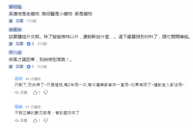 17日,吴钊燮的推文发出后,引发不少岛内网民的批评和质疑。有岛内网友批评“开嘴炮”“不务正业”;还有人批评其“打恐共派”。