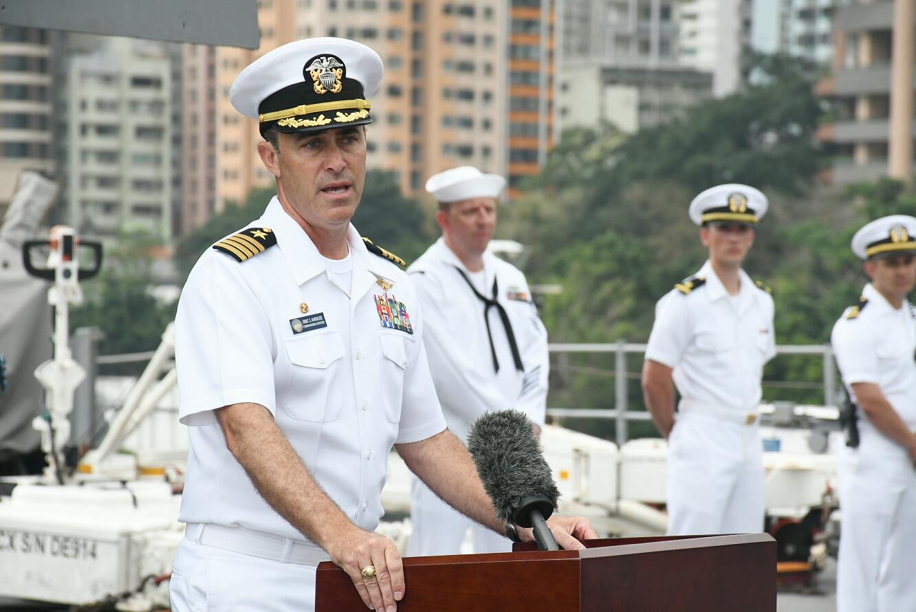 藍嶺號司令Eric Anduze表示,這是他第一次到訪香港,艦上亦有不少船員及水手首次來港,相信今次訪問可以讓大家更好的感受這座美好的城市。第七艦隊司令索耶爾則通過新聞稿表示,第七艦隊過去幾十年曾多次訪問香港,希望彼此訪問能繼續這一傳統。