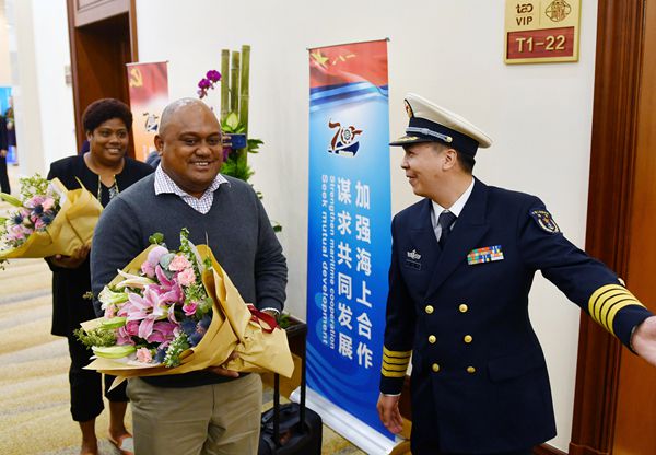 首個到訪青島的斐濟海軍代表團。路透社