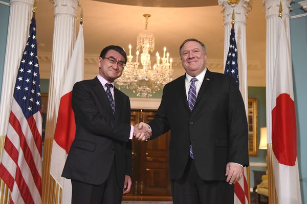 日本外相河野太郎和防衛相岩屋毅、美國國務卿蓬佩奧和代理國防部長沙納漢參加會議,並在會後一同出席記者會。