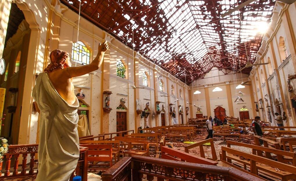 4 月21 日復活節當天,斯里蘭卡驚現8起連環爆炸事件,傷亡慘重。圖為尼甘布市一座被炸毀的教堂。路透社