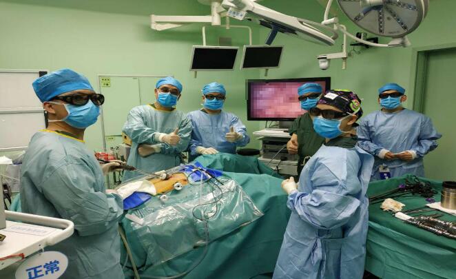 手術醫生戴上3D眼鏡後,通過特殊的鏡頭和監視器便可還原人體真實三維世界,定位更加精準。图为手術順利完成。