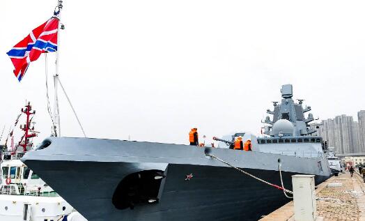 4月21日上午,俄罗斯22350型护卫舰“戈尔什科夫海军元帅”号抵达青岛大港码头,参加中国海军成立70周年多国海军活动。在圣彼得堡设计建造的“戈尔什科夫海军元帅”号护卫舰,是俄罗斯第四代搭载制导导弹的战舰,是22350型护卫舰的首舰。