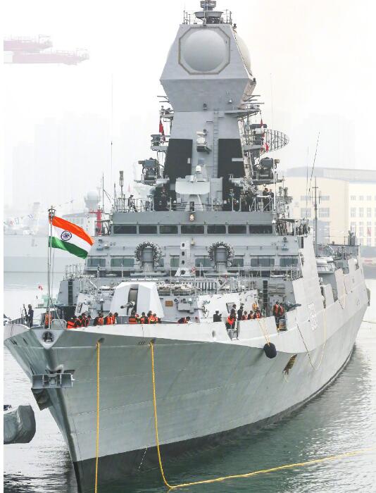 4月21日上午,印度派出的P-15A型首舰“加尔各答”号导弹驱逐舰(INS Kolkata D63)与迪帕克级综合补给舰“沙克提”号(INS Shakti A57)相继抵达青岛大港码头,参加中国海军成立70周年多国海军活动。“加尔各答”号是印度海军最新型防空导弹驱逐舰加尔各答级的首舰。