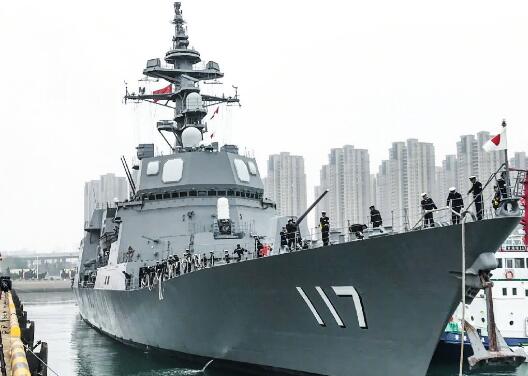 4月21日上午,日本海上自卫队秋月级驱逐舰“凉月号”(JS Suzutsuki DD-117)抵达青岛大港码头,参加中国海军成立70周年多国海军活动。
