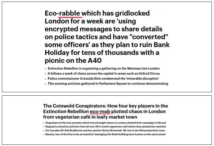 比如,英国《每日邮报》就在其多篇关于环保人士“占领”伦敦街道的报道中,就直接将“占领街道”的抗议者称为“暴民”与“乌合之众”。
