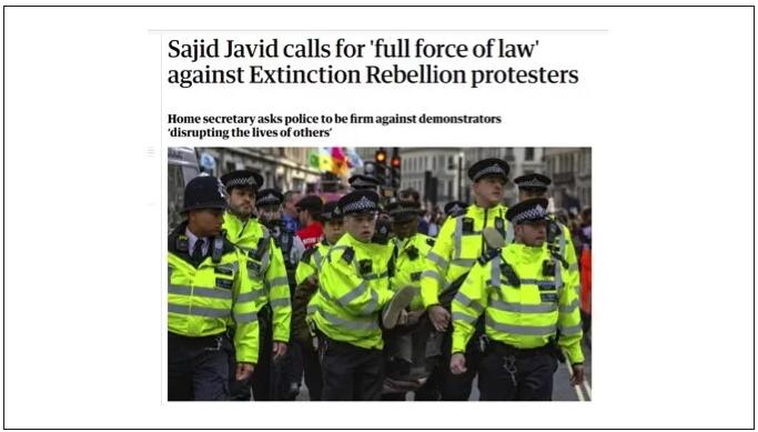 警方对抗议者雷厉风行的逮捕行动,还得到了英国政府官员的大力支持。根据英国卫报的报道,英国内政大臣赛义德·贾维德就呼吁动用全部的执法力量去对付“占领”城市街道的抗议者,并让警方不要“心慈手软”。