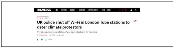一些公共场所为了配合警方对抗议者的打击,也关闭了无线网WIFI链接…