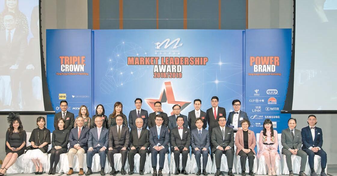 「市場領袖大獎2018/2019」頒獎典禮,賓主及個人大獎得主合照。