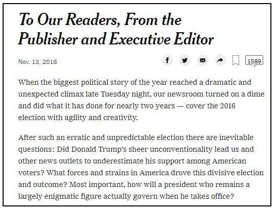 这封信重申《纽约时报》在总统竞选期间“公平报道两位候选人”(特朗普与希拉里)的观点,同时承诺“重新致力《纽约时报》的新闻使命”。